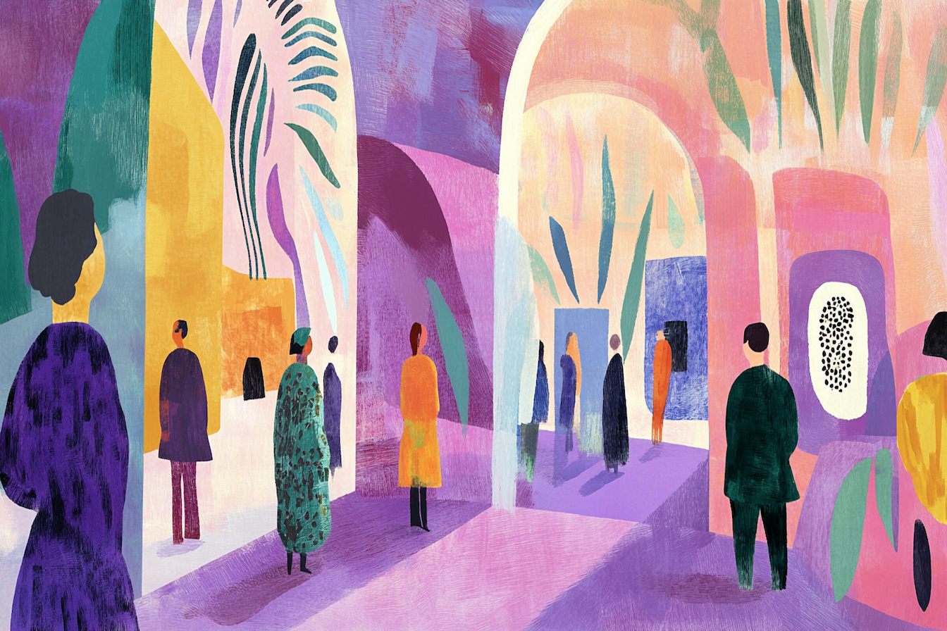 - Immersive Gallery Scene – A dynamic, colorful depiction of an art gallery.
