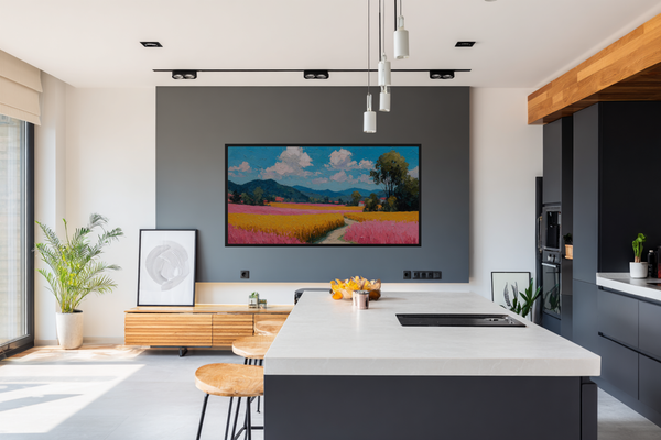 After purchase, you'll receive instant access to download your high-resolution PNG file. For Samsung Frame TV, simply upload through the SmartThings app or directly via USB. HiSense CanvasTV owners can use the Art Mode interface to add custom artwork. Files are formatted to fill your screen perfectly with no cropping required. For detailed upload instructions, visit our comprehensive Frame TV Art Upload Guide.