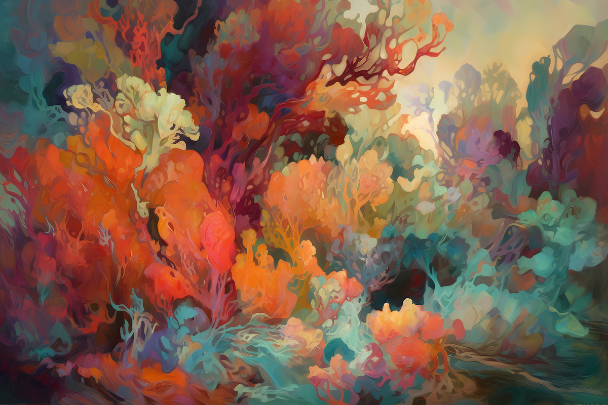 Immerse yourself in the mesmerizing colors of Foliage in Dreamy Hues, a vibrant abstract botanical piece designed for Samsung Frame TV, digital displays, and modern interior decor. This artwork swirls with rich oranges, deep reds, soft teals, and ethereal greens, capturing the essence of nature’s dynamic beauty in a dreamlike composition.