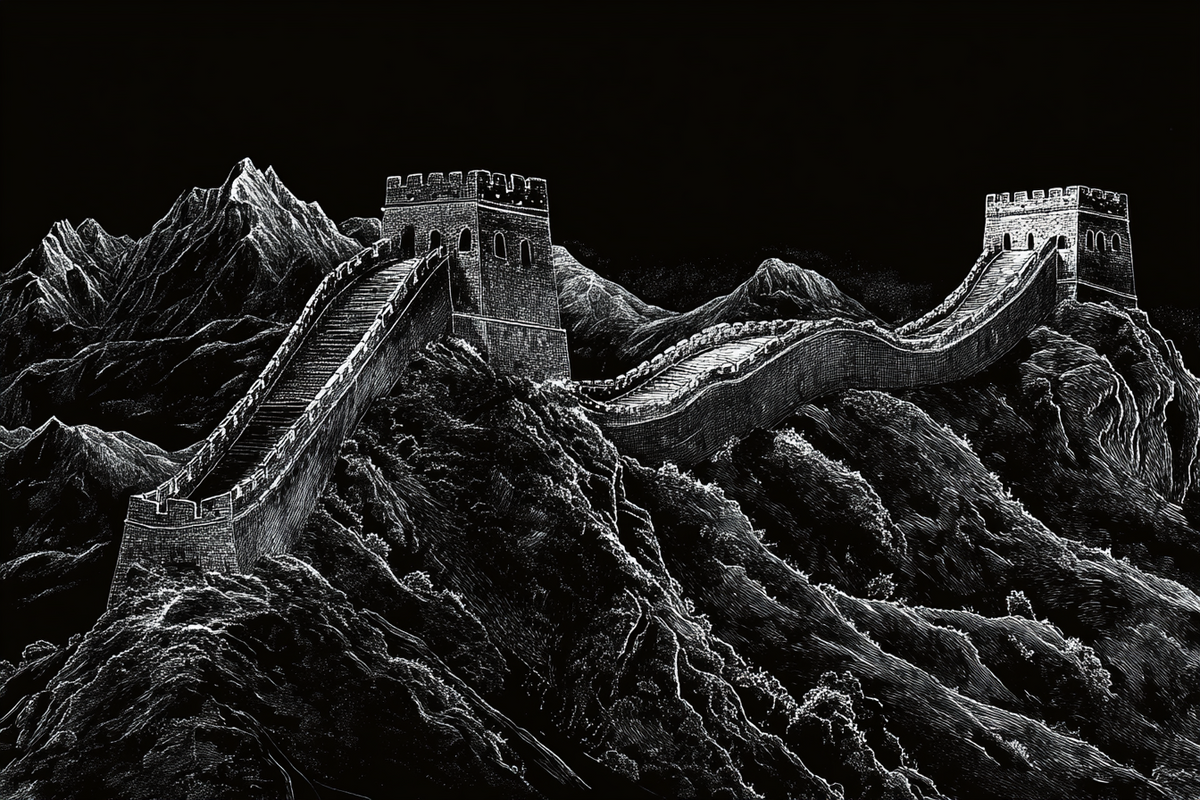 Great Wall of China – Monochrome Digital Art Variants for Samsung Frame TV