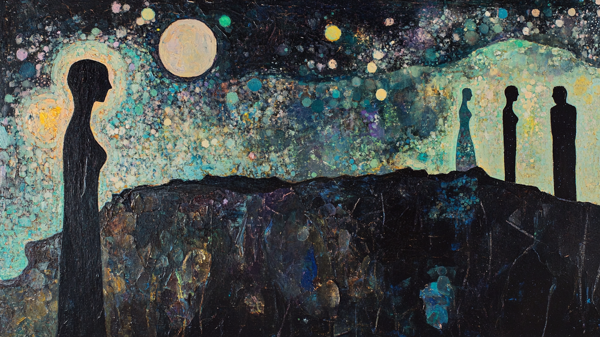 When stars emerge one by one, when a citrus moon illuminates ancient landscapes, when each light becomes a deliberate point of luminescence—that's the meditative magic of pointillism. Pointillist Dreams brings this meticulous technique to your Samsung Frame TV or HiSense CanvasTV, rendered in ink blacks, soft charcoals, and warm citrus yellows that evoke both Seurat's scientific color theory and contemporary stargazing wonder.
