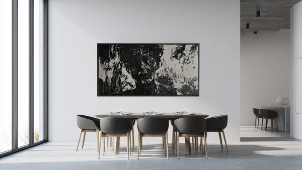 Urban Echoes thrives in industrial, minimalist, or contemporary spaces where its raw energy can take center stage. The monochromatic palette makes it incredibly versatile – it can anchor a gallery wall of street art, stand alone as a powerful statement piece, or bridge traditional and modern aesthetics. In loft spaces with exposed brick or concrete, it feels perfectly at home. For more polished interiors, it adds an edge of urban sophistication. The piece works particularly well in creative spaces, home gyms, or entertainment rooms where energy and movement are desired.