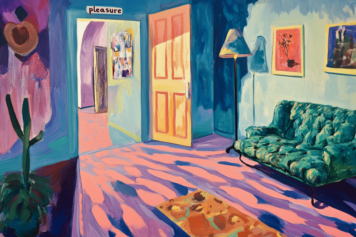 - Modernist Interior Scene – Inspired by Hockney, Matisse, and James Jean.
